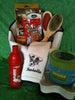 Perfect for anyone who enjoys GRILLIN' & CHILLIN'. The gift basket contains a 3-piece tool set. The one pictured comes in a zippered cloth bag. Other items are BBQ sauce, Burger & Fries Salt & Pepper shakers, set of 4 mini meat thermometers, meat Rub or BBQ Spices, Coookbook, Strike-A-Fire... -