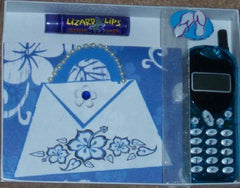 embellished notecards with lip balm and a working calculator “cell phone”.